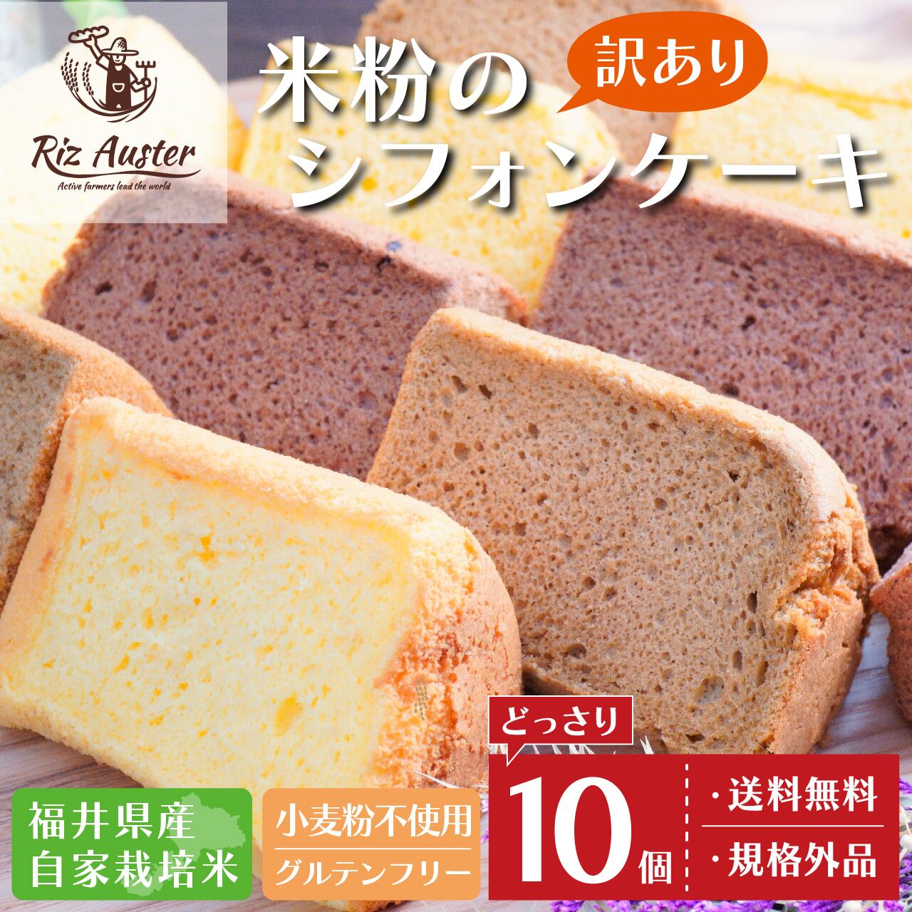 ・シフォンケーキ 10個入り(紅茶・きなこ・黒ごまを組み合わせています。写真にはプレーンが入っておりますが、今回のセットにプレーンは含まれませんのでご注意ください。)